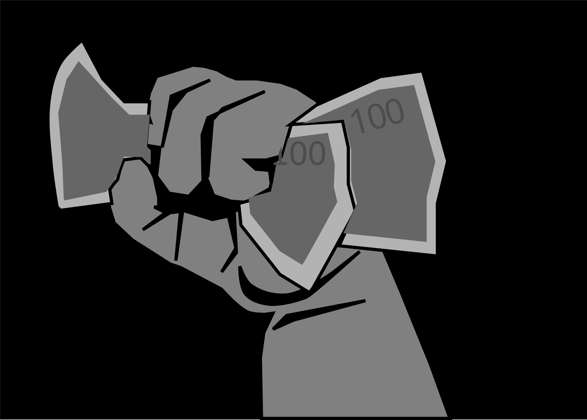 a stylized fist tightly grasping money