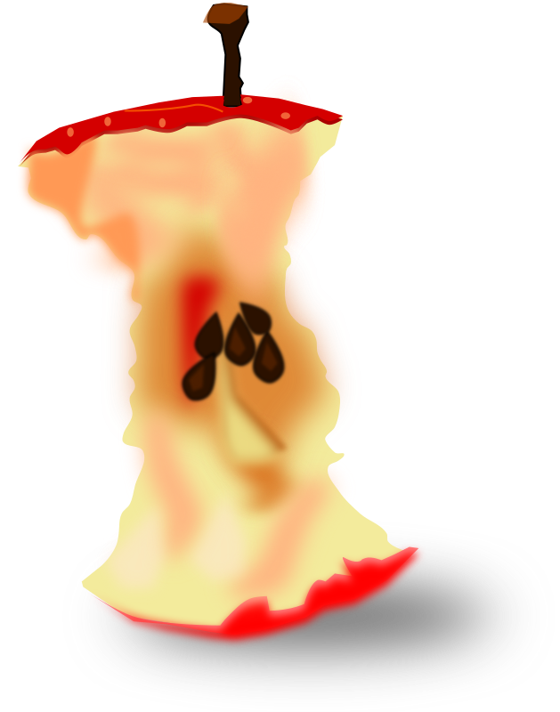 an apple core standing up