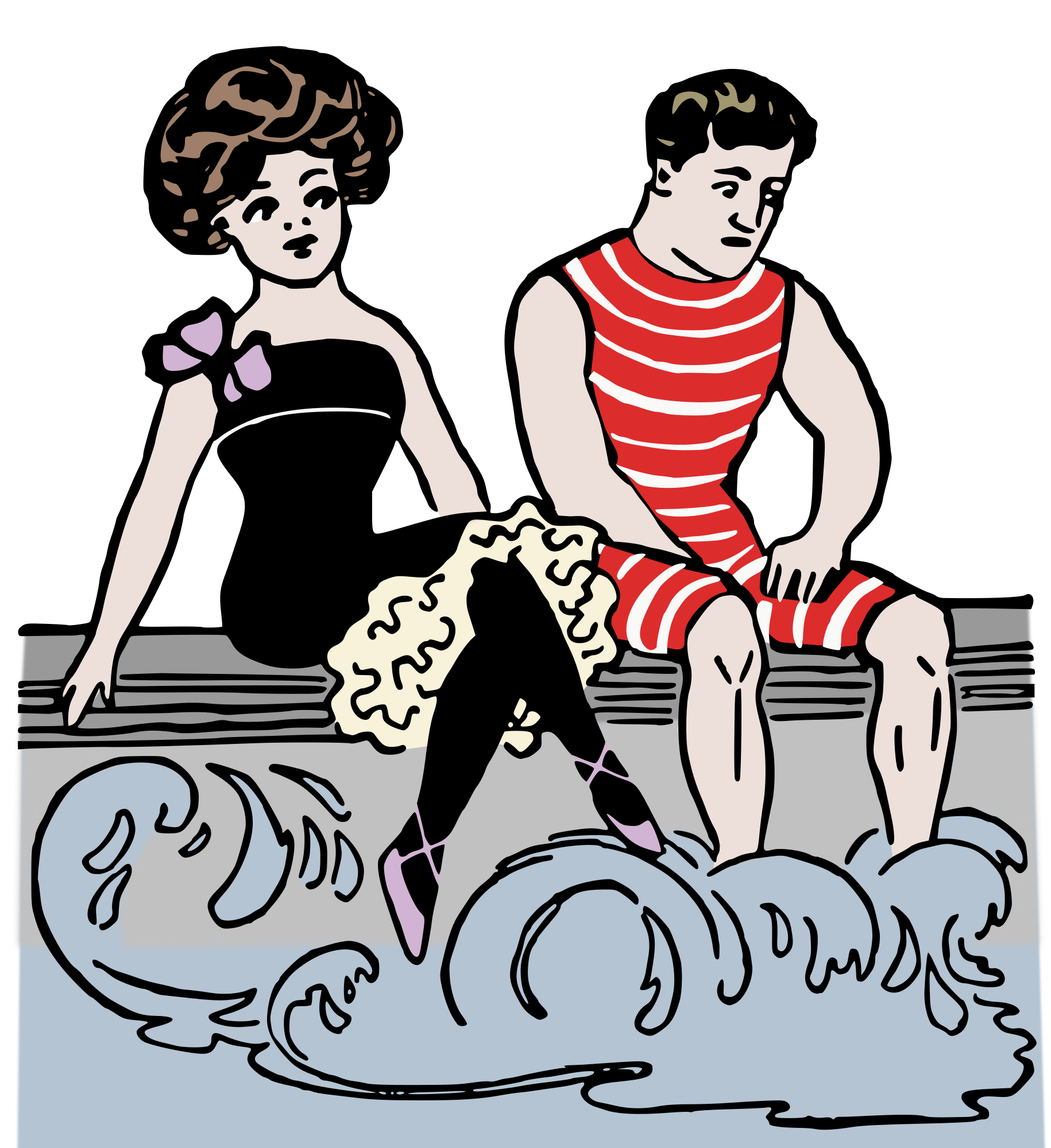 colour version of this couple on the beach