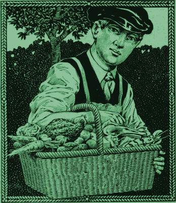 a vintage man with a basket of food