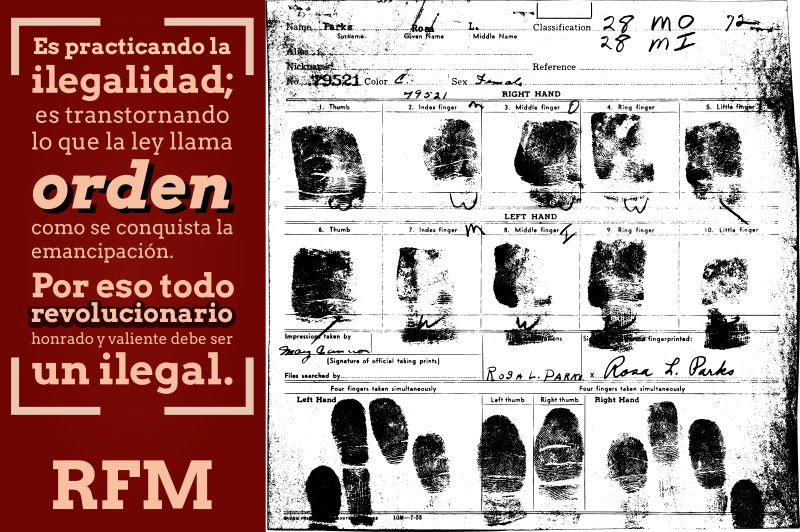 "It is practicing illegality; it is by upsetting what the law calls order that emancipation is achieved. That is why every honorable and courageous revolutionary must be an illegal." —Mexican revolutionary and anarchist Ricardo Flores Magón
