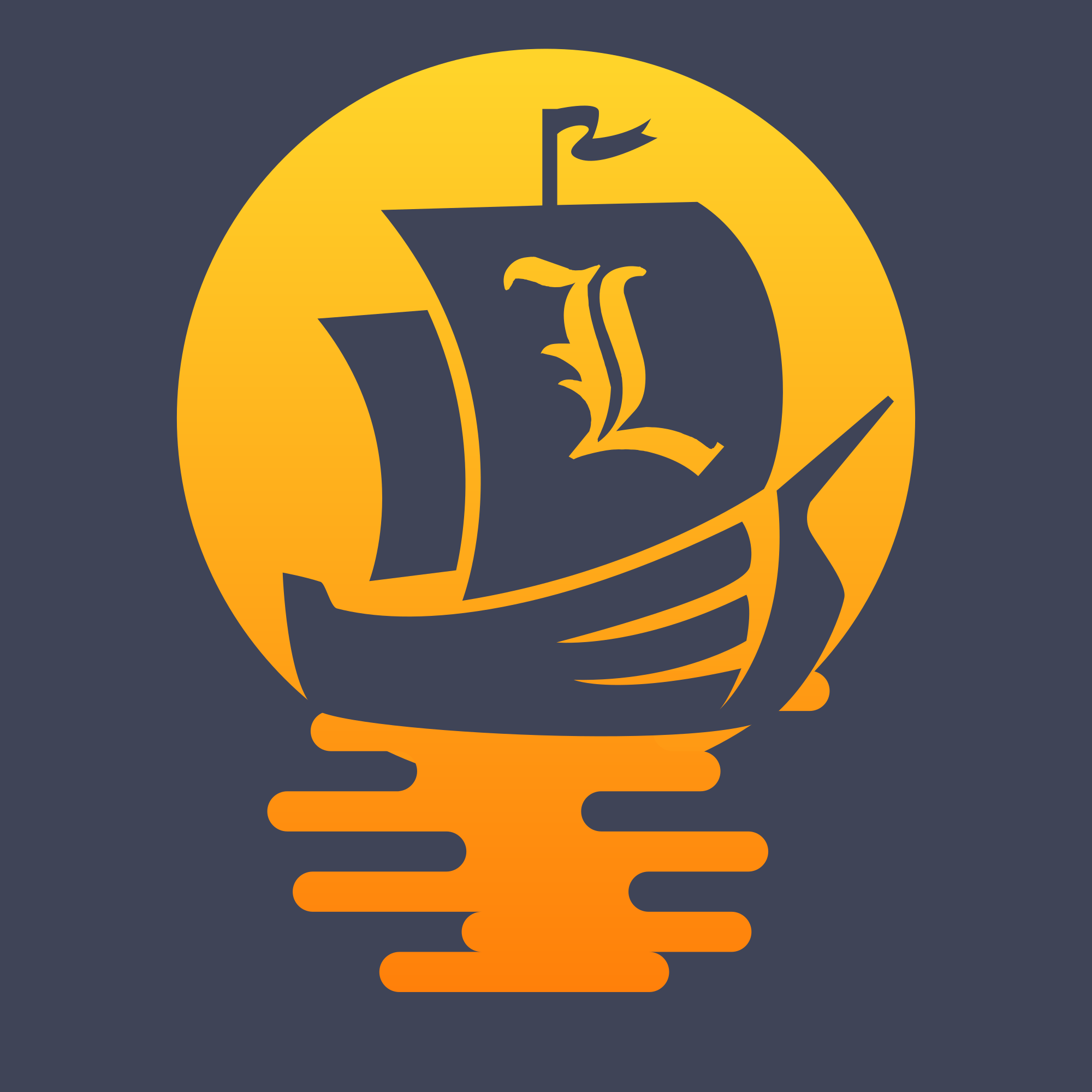 A small ship sailing on sunset with the letter "L" in the sails, meaning "liberty".