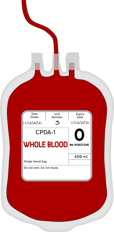 a plastic bag of donated whole blood