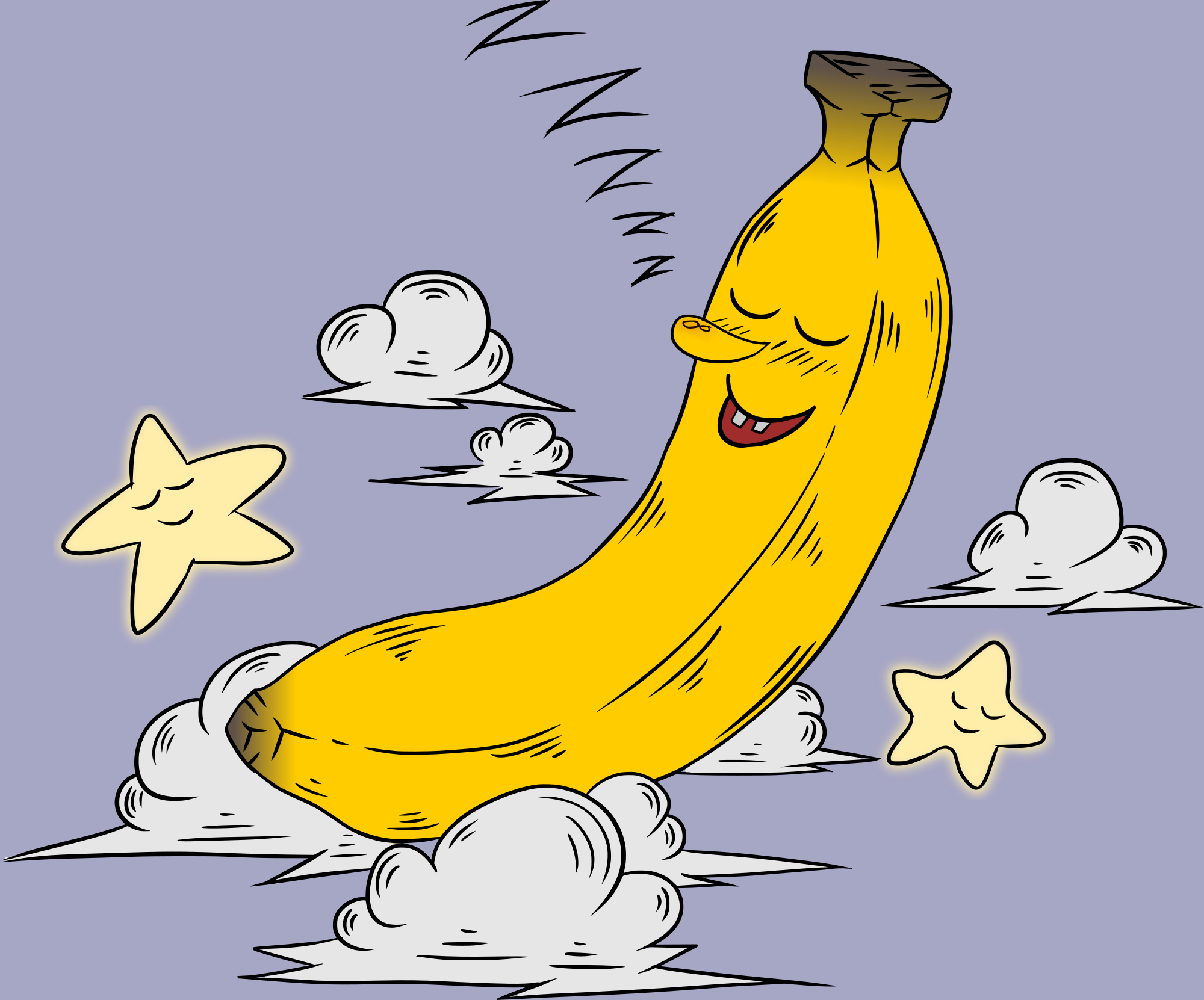 I thought I would do a colour remix of this surreal (meaning is lost on me) banana sleeping in the night sky