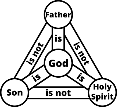 Explanation of the Trinity in Christianity as an image. Has "God" in the center instead of the Tetragrammaton.