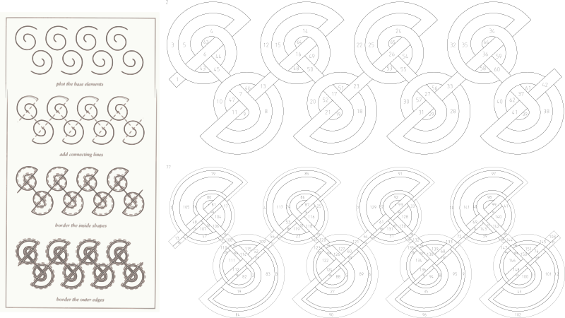 This shows the steps to draw a Celtic knot based on a central spiral taken from Celtic Knotwork designs by S Sturrock.