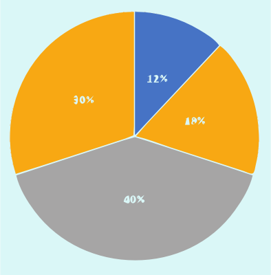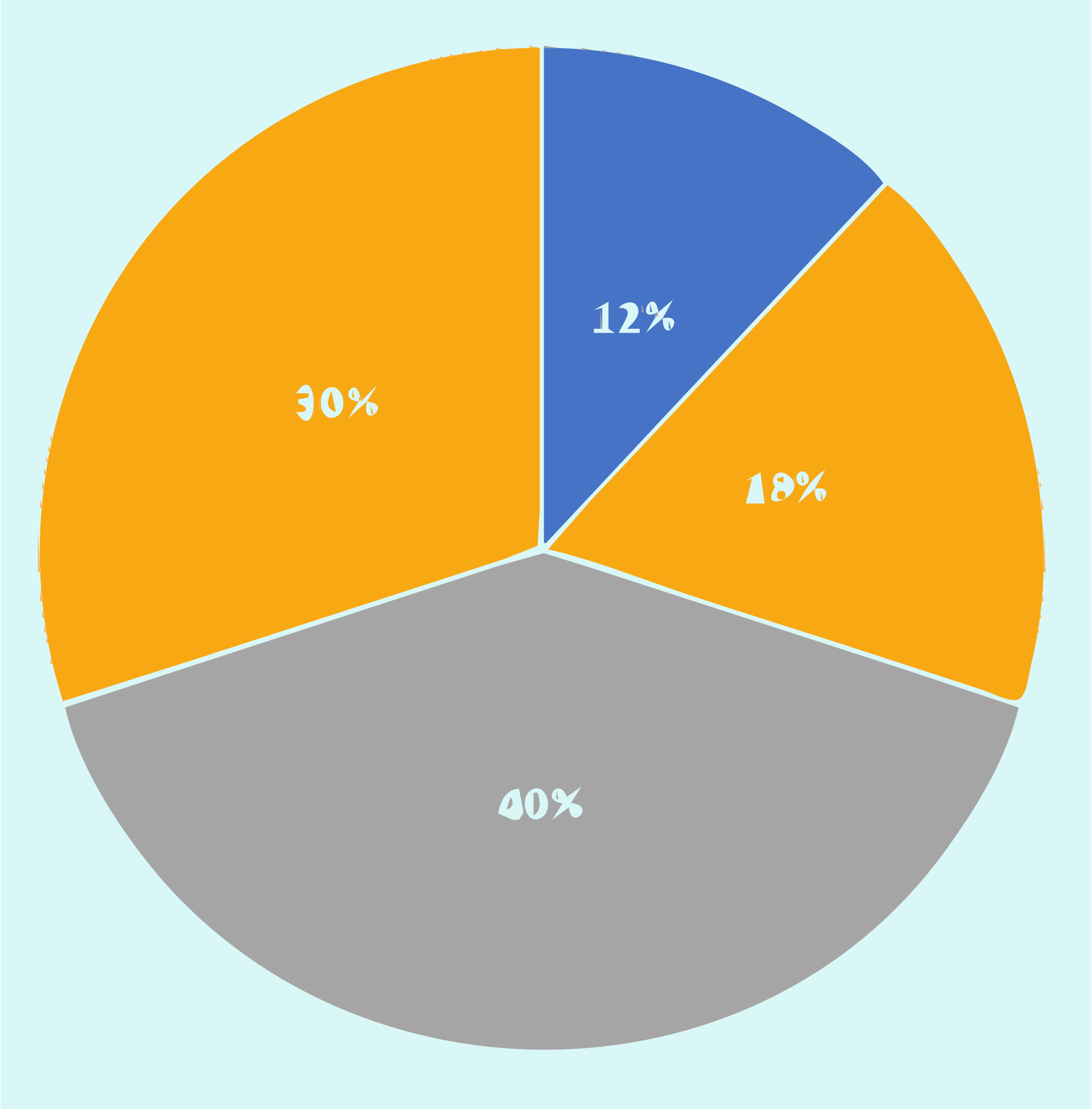 A pie chart showing coloured pieces with percentages written on pieces.