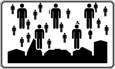 Painting «Golconda (Magritte)» made up of symbols of traffic signs