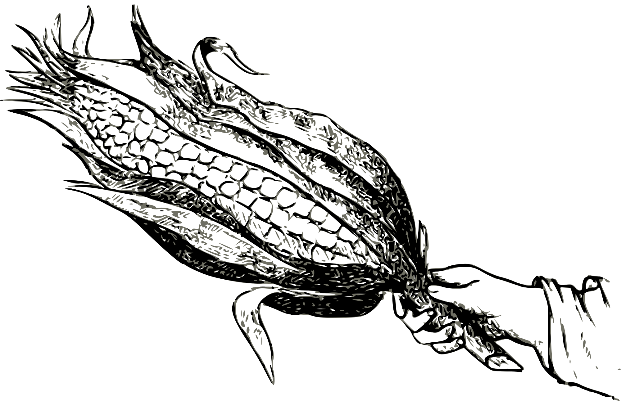 a hand holding a big ear of corn