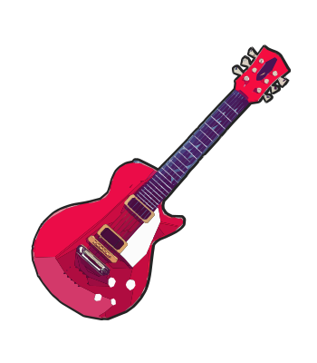 a red guitar ready to play some sort of music