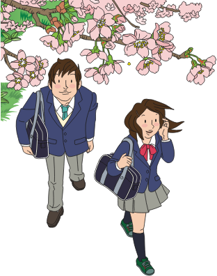 - students boy girl male female young man woman lady sakura cherry blossoms spring school student uniform uniforms youth schoolgirl