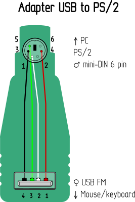 Pinout of adapter USB to PS/2.