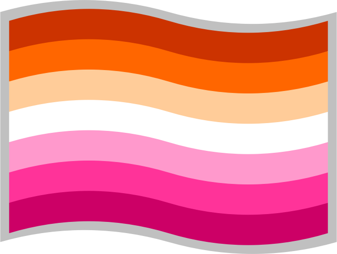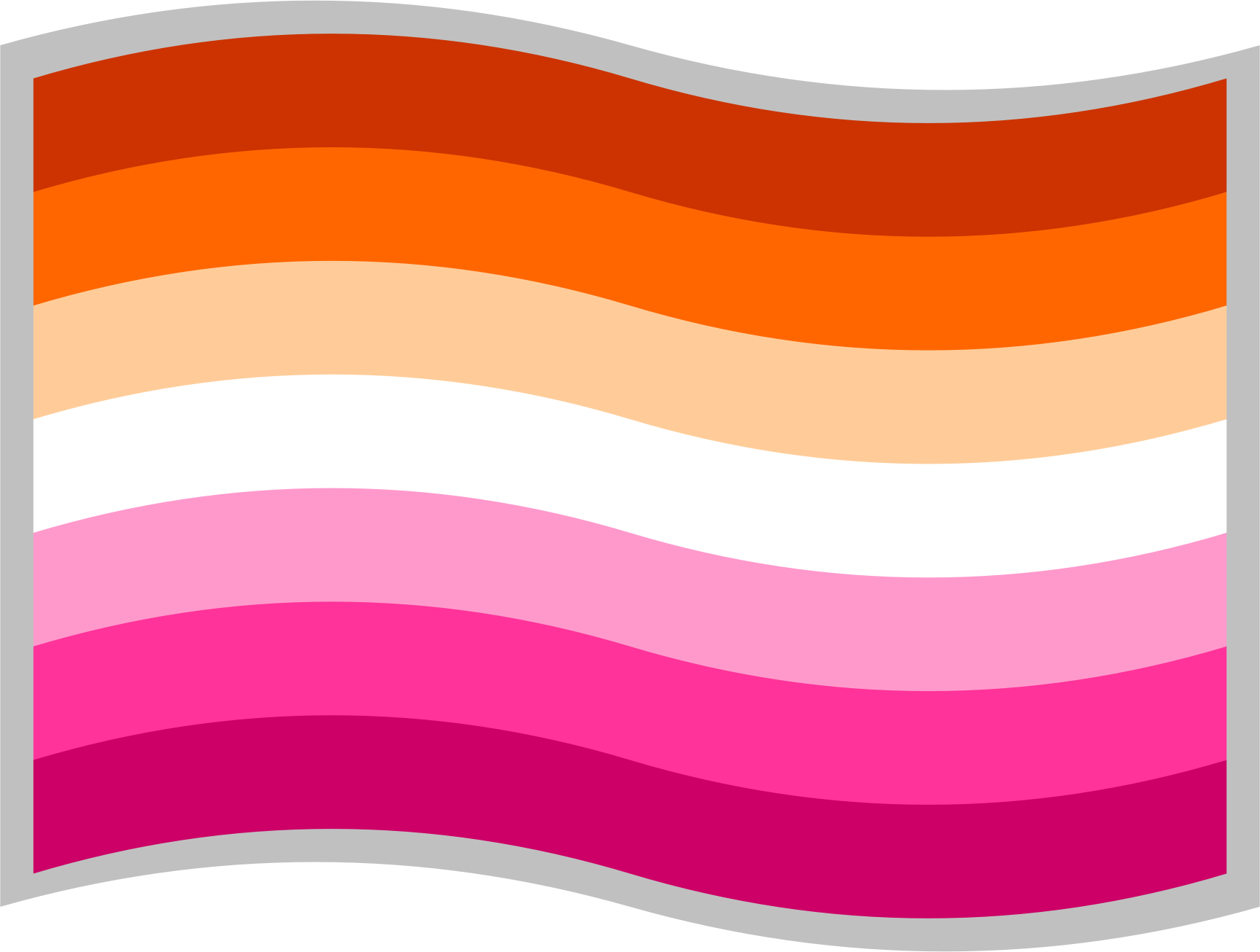 Orange-pink lesbian flag; slightly curved to suggest waving in the wind; with a grey border