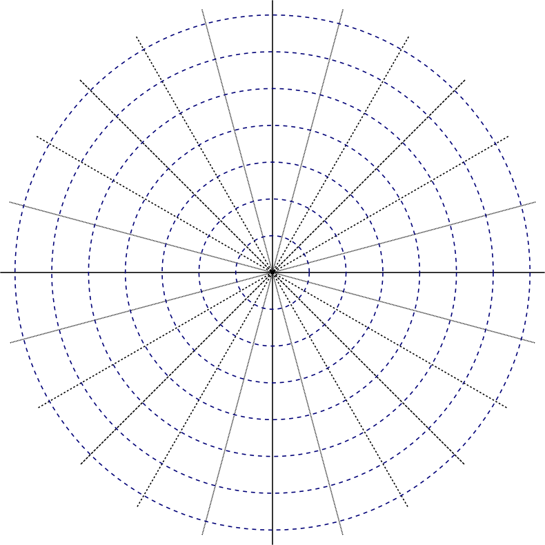 Polar coordinate system graph paper.