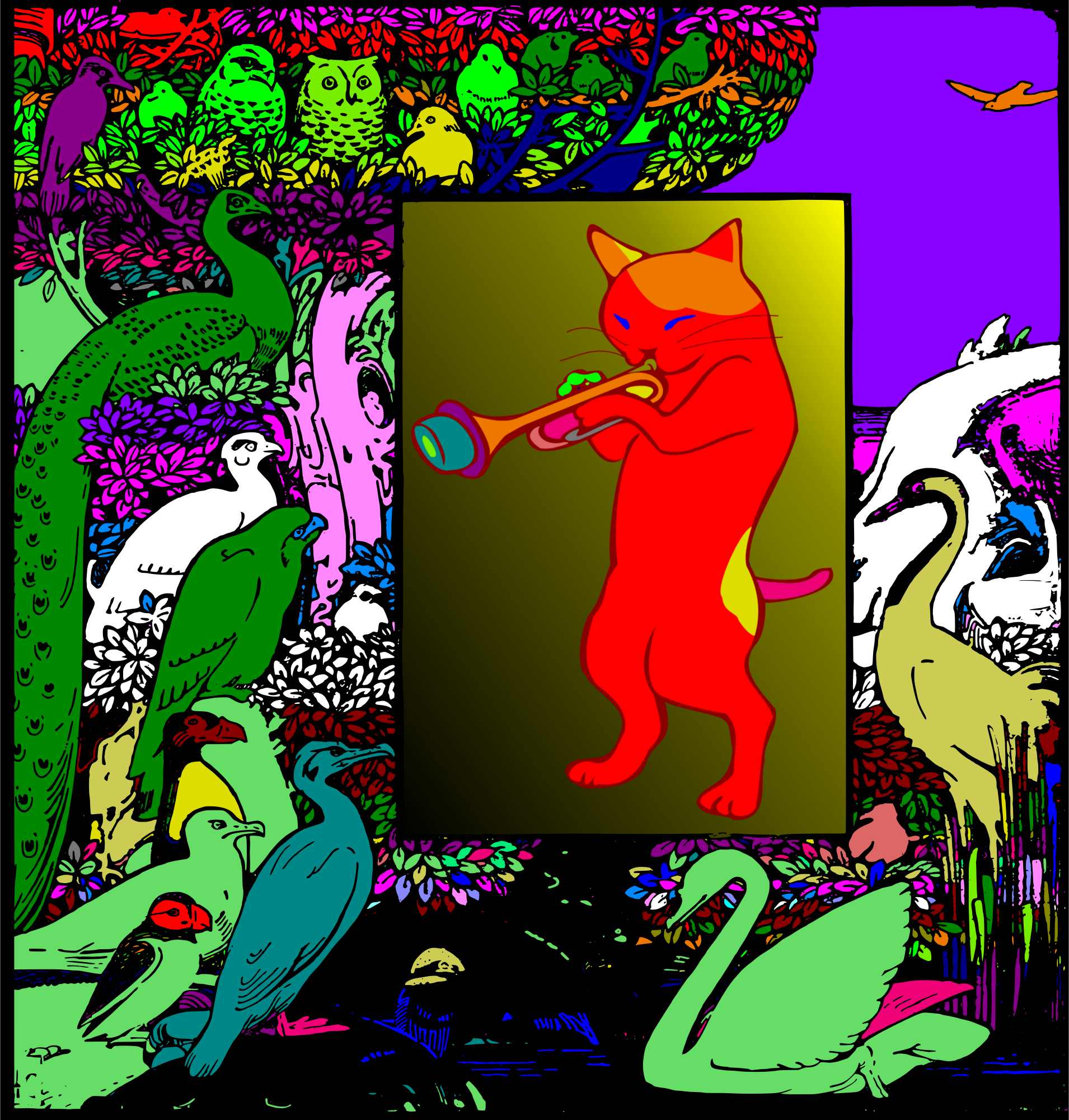 Anthropomorphic Trumpet Playing Cat