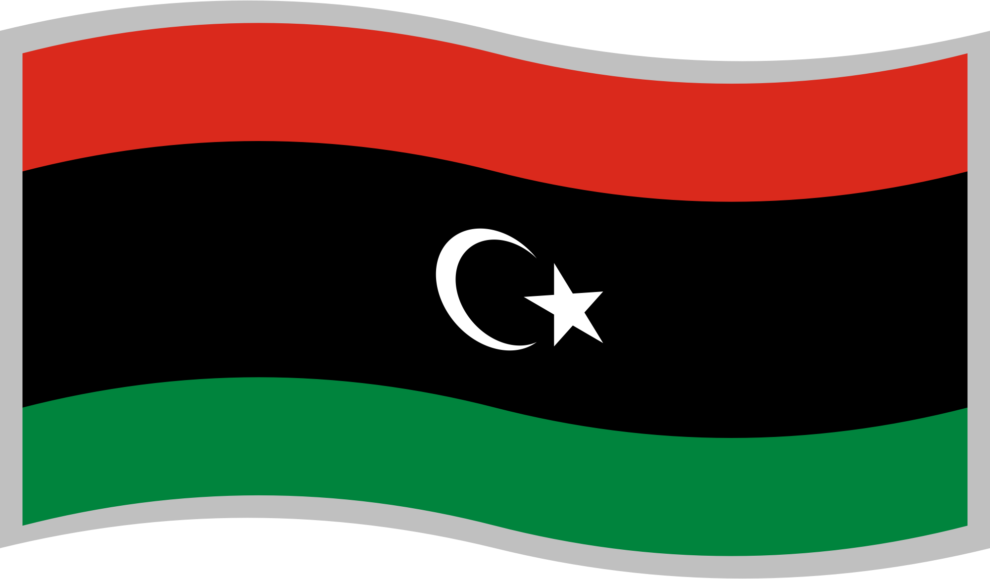 Flag of Libya; slightly curved to suggest waving in the wind; with a grey border