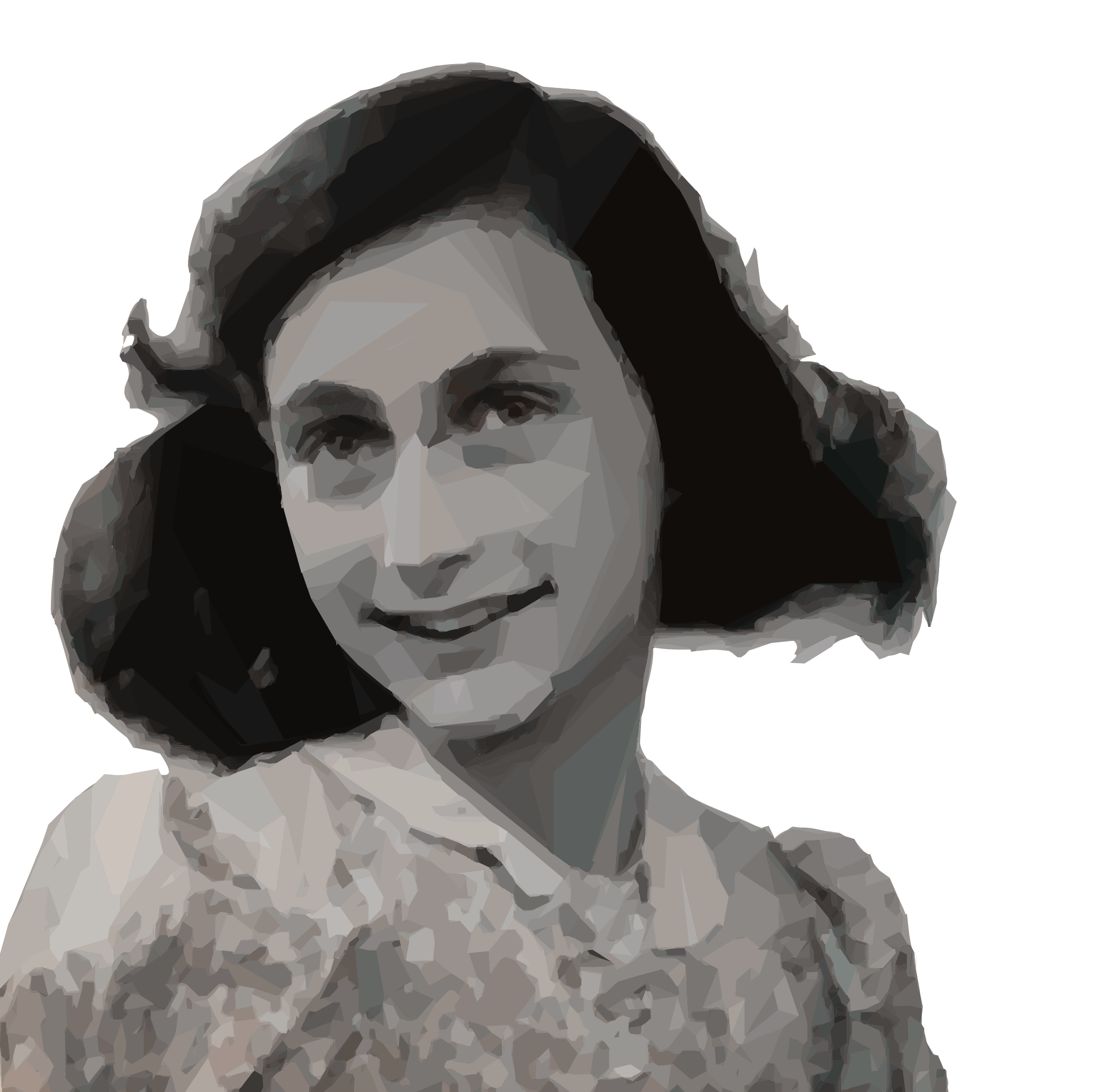This is the face of Anne Frank the secret Jewish diarist during World War 2 who sadly did not survive the war but who left her diary for the future to read. (Based on a public domain photo of her.)