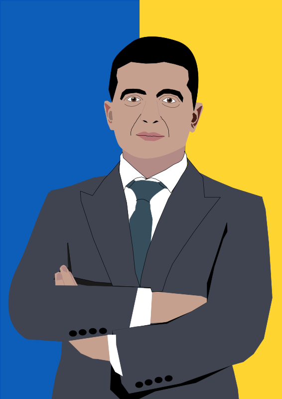 This is clip art featuring the president of Ukraine, Volodymyr Zelenskyy, posing next to the Ukrainian flag. I also have a version of Volodymyr Zelenskyy against a plain background, which you can find at:https://openclipart.org/detail/336092/volodymyr-zelenskyy-plain-background-version