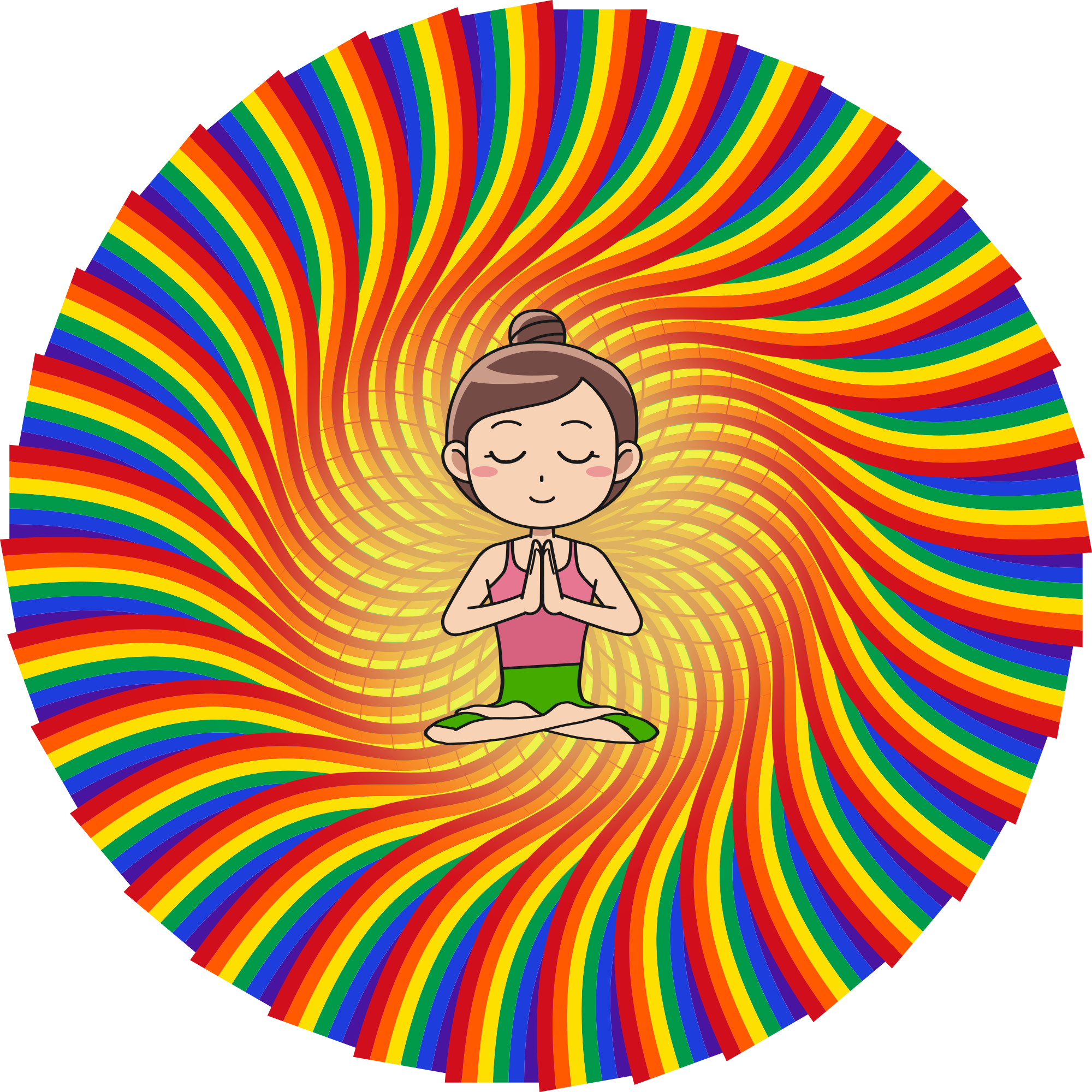 a woman in a mandala rainbow meditating