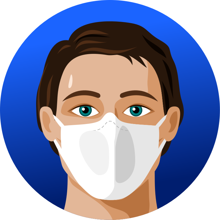 A simplistic male head wearing a FFP2 face mask.