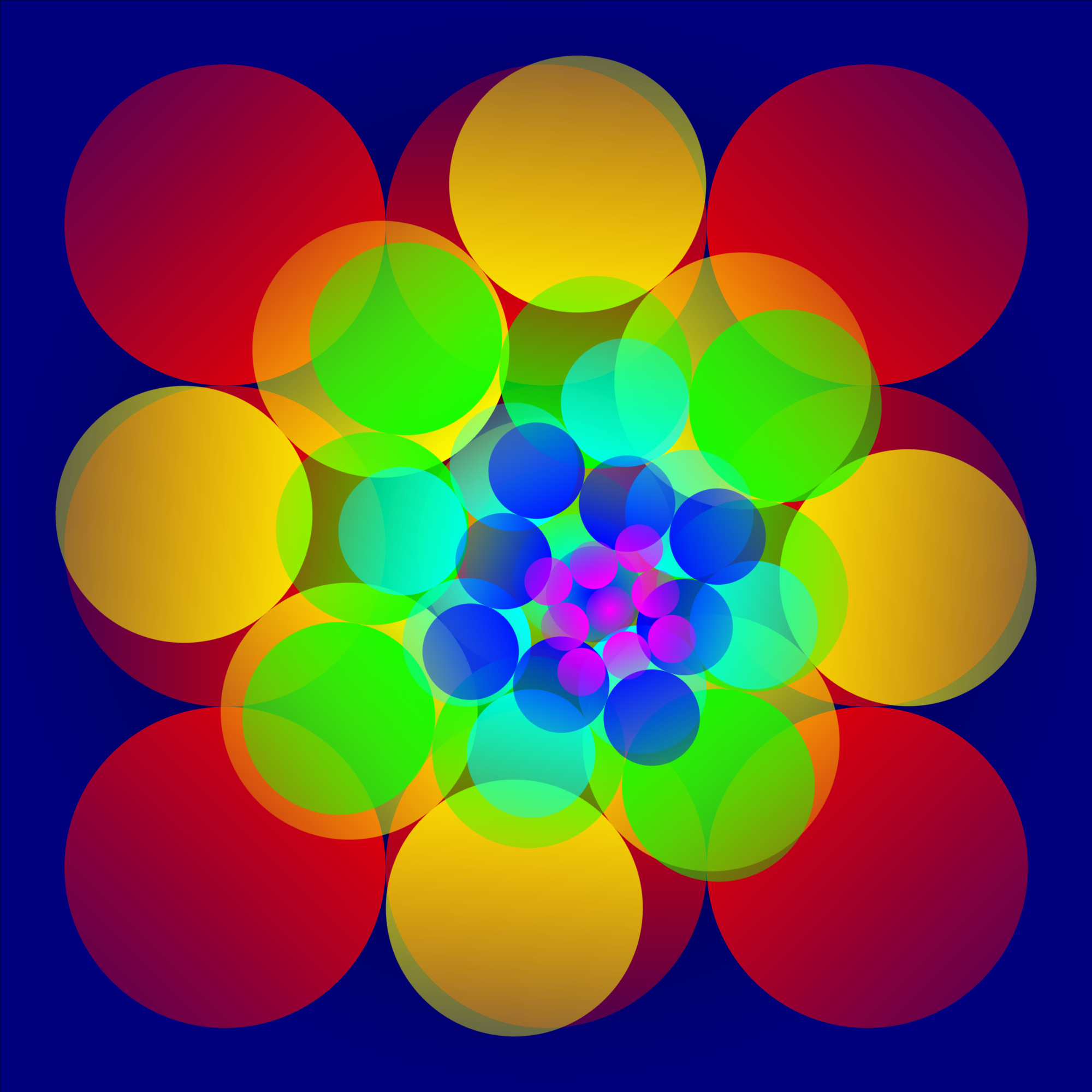 a set of gradients disguised as a flower. its a way of faking a light source: 8 linear gradients arranged around a center. a couple of radial gradients (for in and out) and some filters for fun...