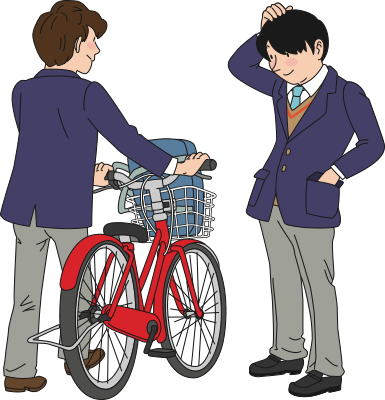 Male watching friends bike