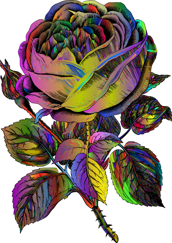 - Rose Flower Sketch Line Art Floral Plant Decoration Decorative Ornamental Vintage Retro Old Antique Colorful Prismatic Chromatic Rainbow Surreal Psychedelic rainbow
