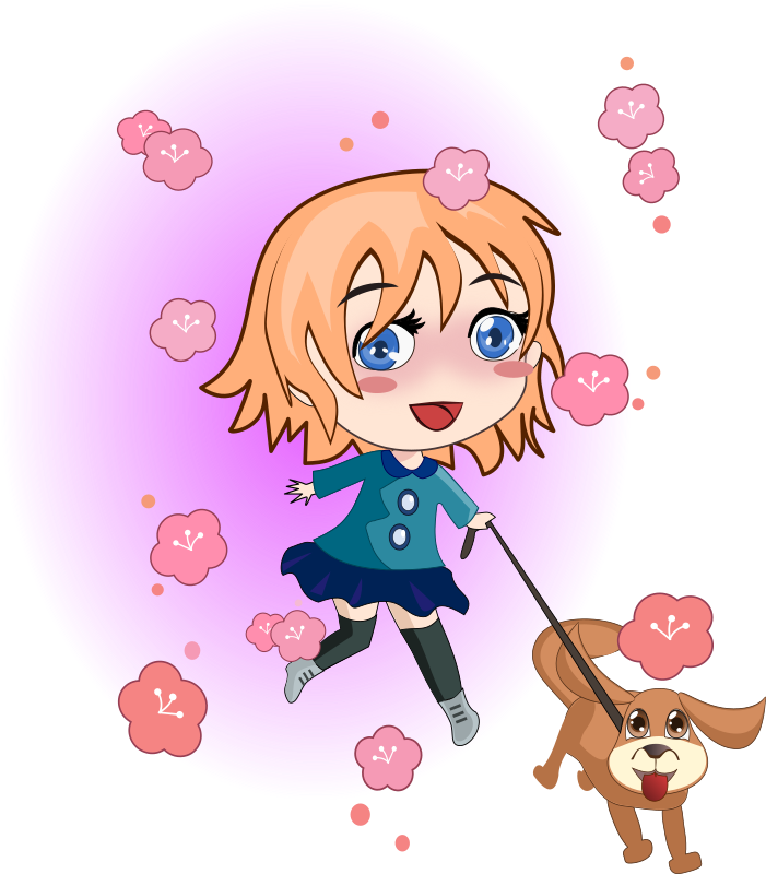 Like all things to do with time, this year's spring is rapidly fading away... but I thought I'd do a spring remix of this lady walking with her dog (especially because my favorite time of spring is near the very ending when the blossoms shower down like a petal blizzard)