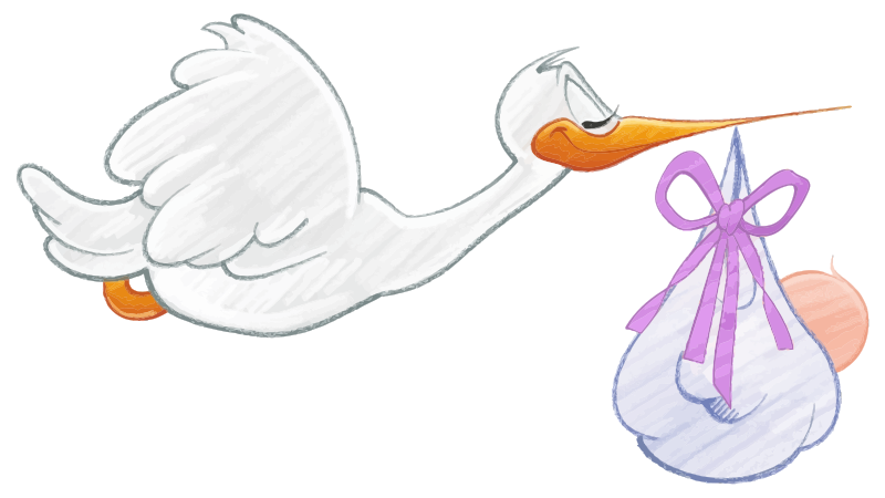 Stork Carrying Baby Girl