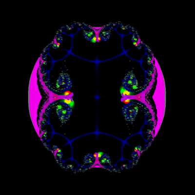 this one is made from overlays from 0,0 to 2,0. i think julia sets are like soap bubbles. i dont know what anyone can do with these but they are chock full of cool shapes!!