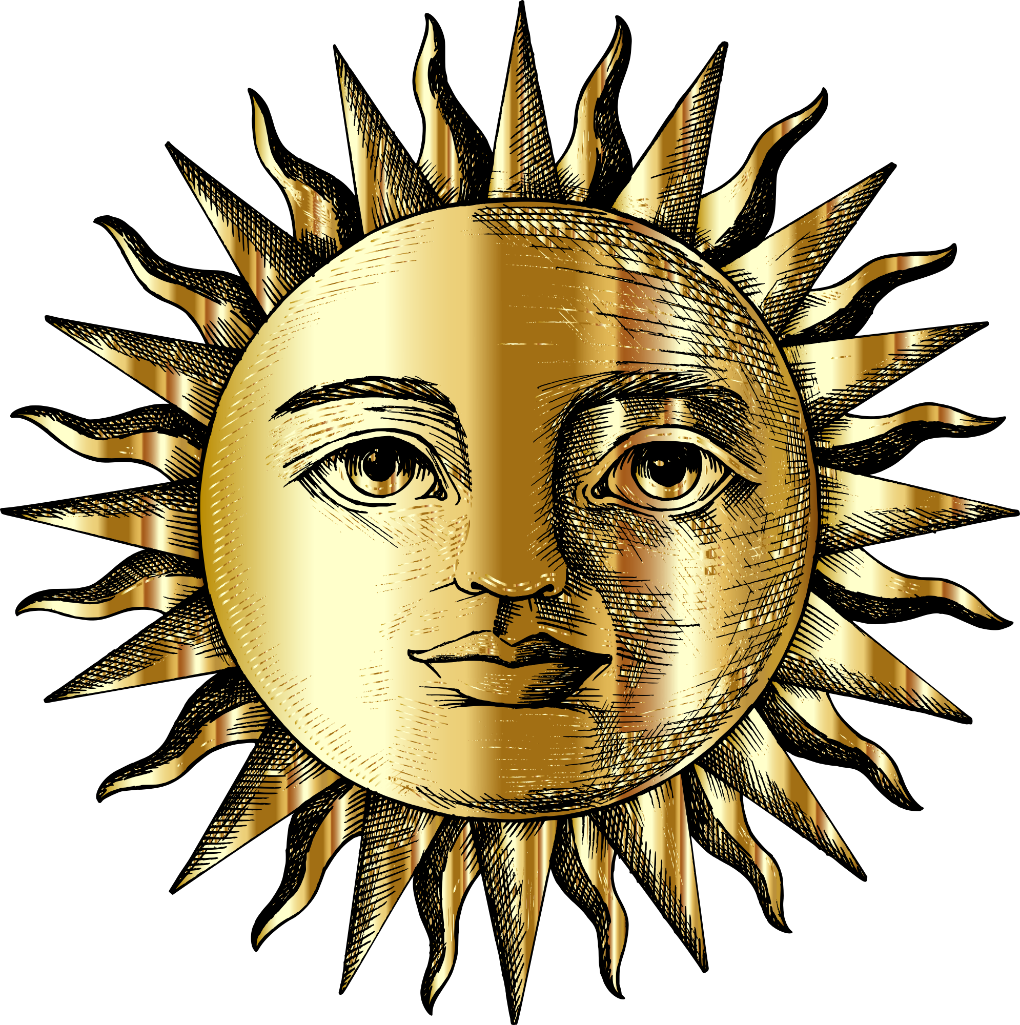 Vintage Sun Face Line Art Gold