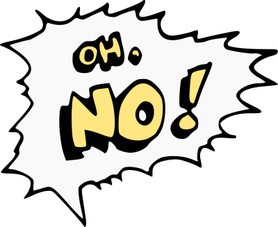 Speech bubble exclamation with "Oh no!"