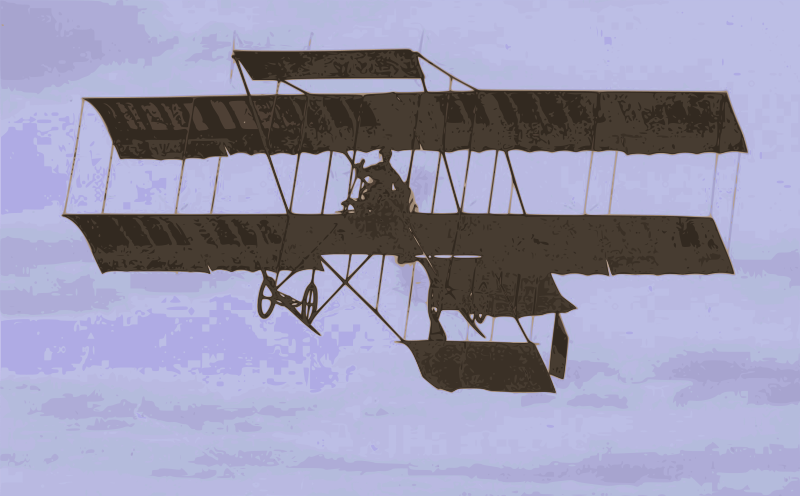 a biplane flying through the sky