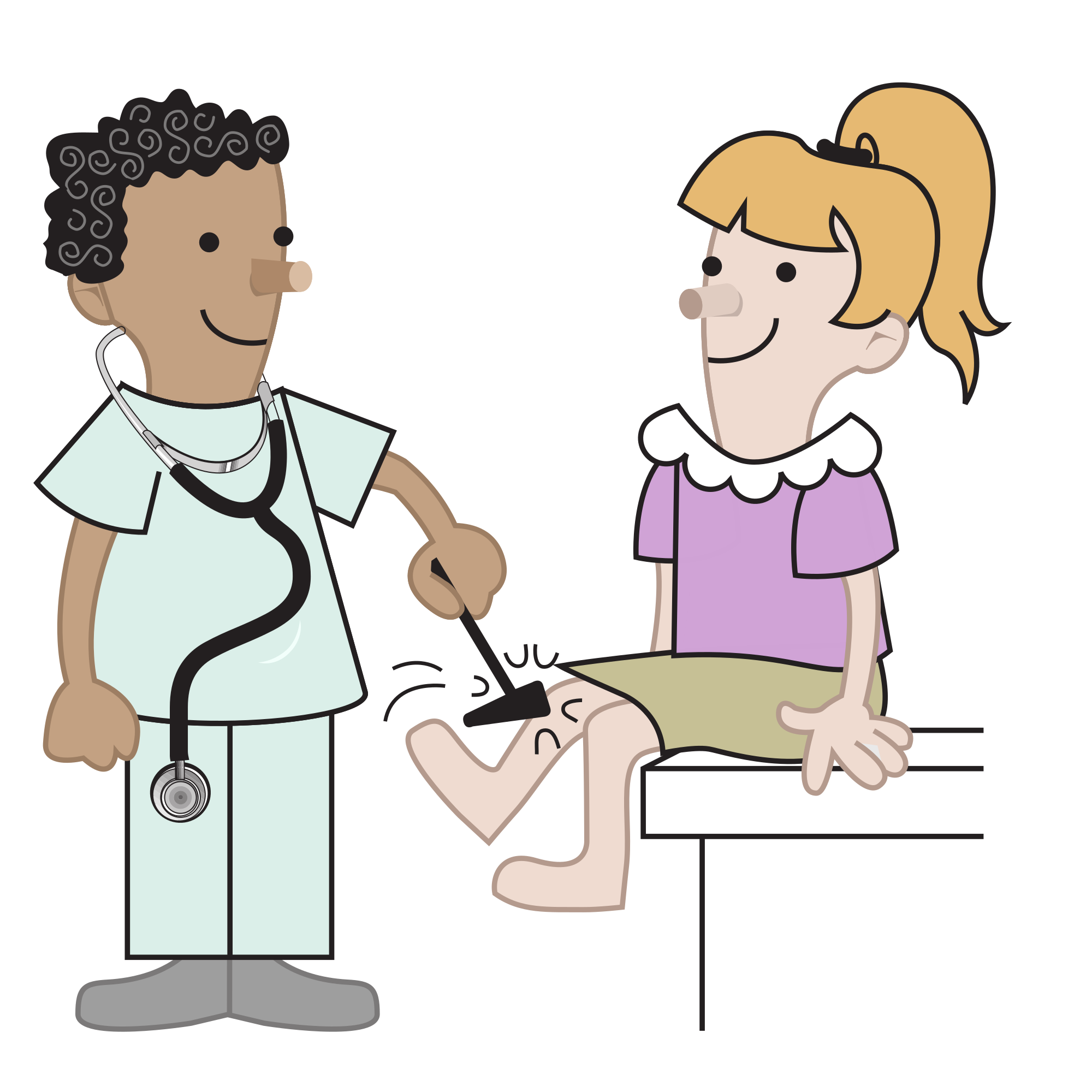 a colour version of this doctor checking a young girl's reflexes
