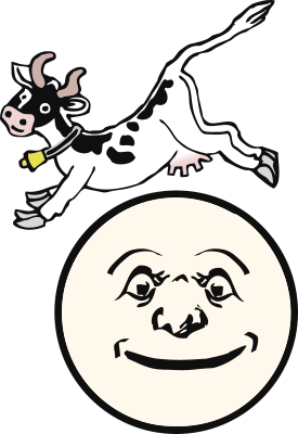 It's a part of the old nursery rhyme Hey Diddle Diddle that ends, "And the Cow Jumped over the Moon." This is the bare bones of the little nursery rhyme. I'm planning to flesh it out more. Thanks to @Technaturally and @j4p4n for the two images. More on the nursery rhyme.