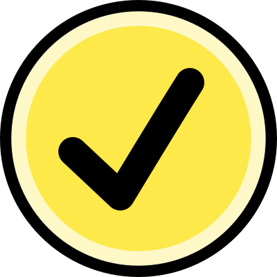Shows a tick-mark (black on yellow, rounded). Suitable for a game, app, website, etc.