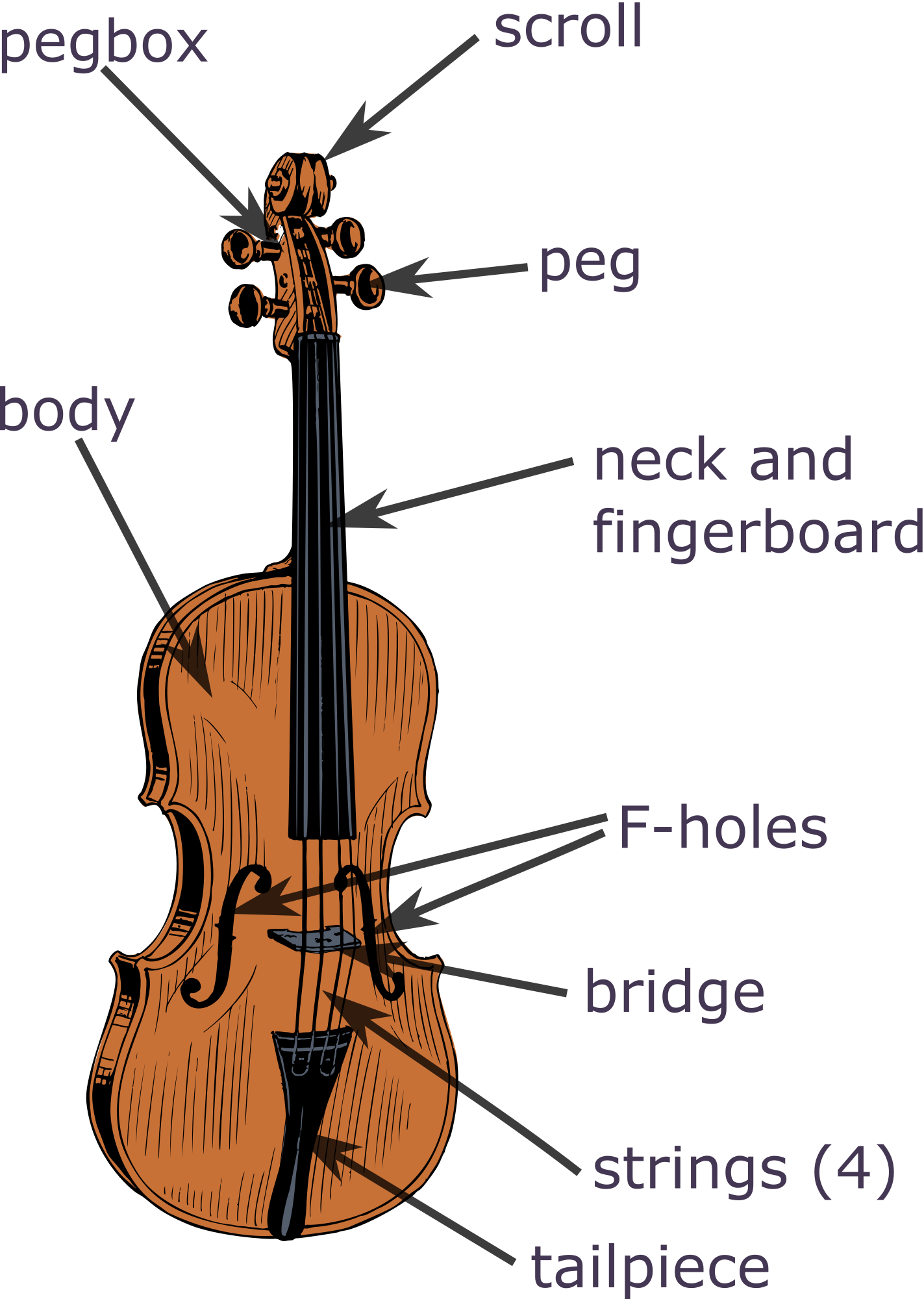 the different names for the different parts of a violin