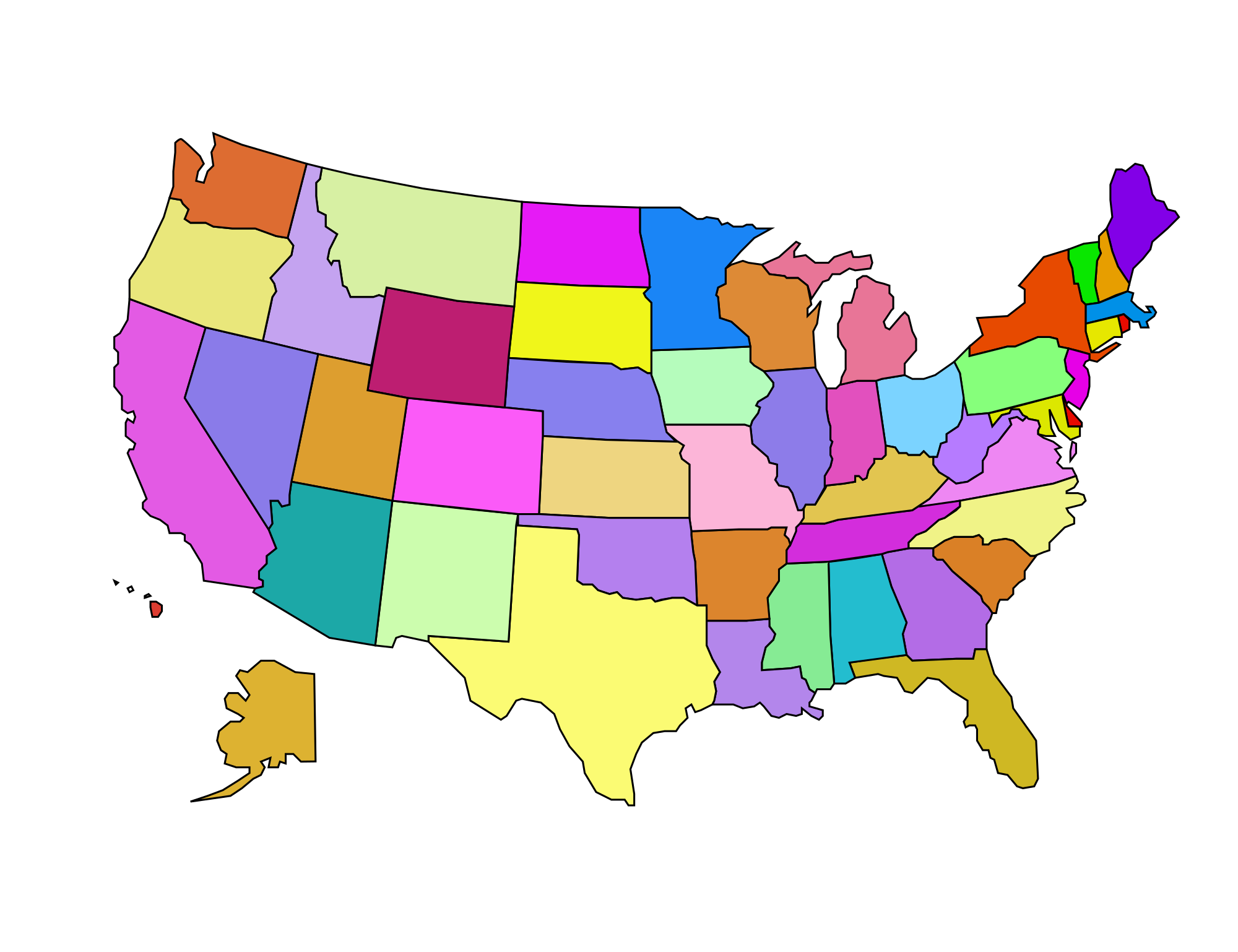 A colorful map of the United States.