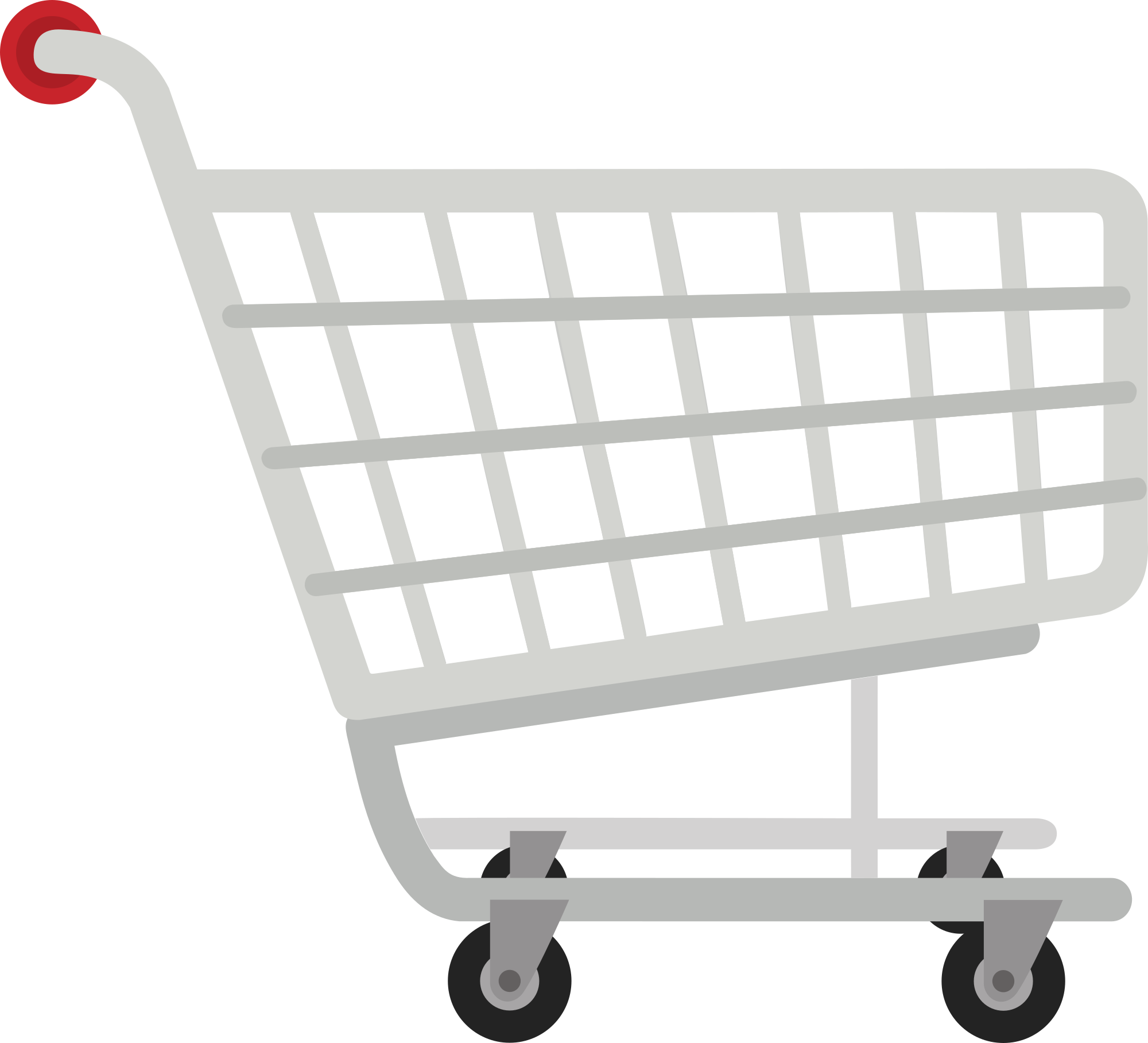 My Public Domain remix. Fully recreated, added missing wheels and extended the bar from the original. Empty Shopping Cart from this vector source: https://openclipart.org/detail/305413/two-women-at-the-supermarket