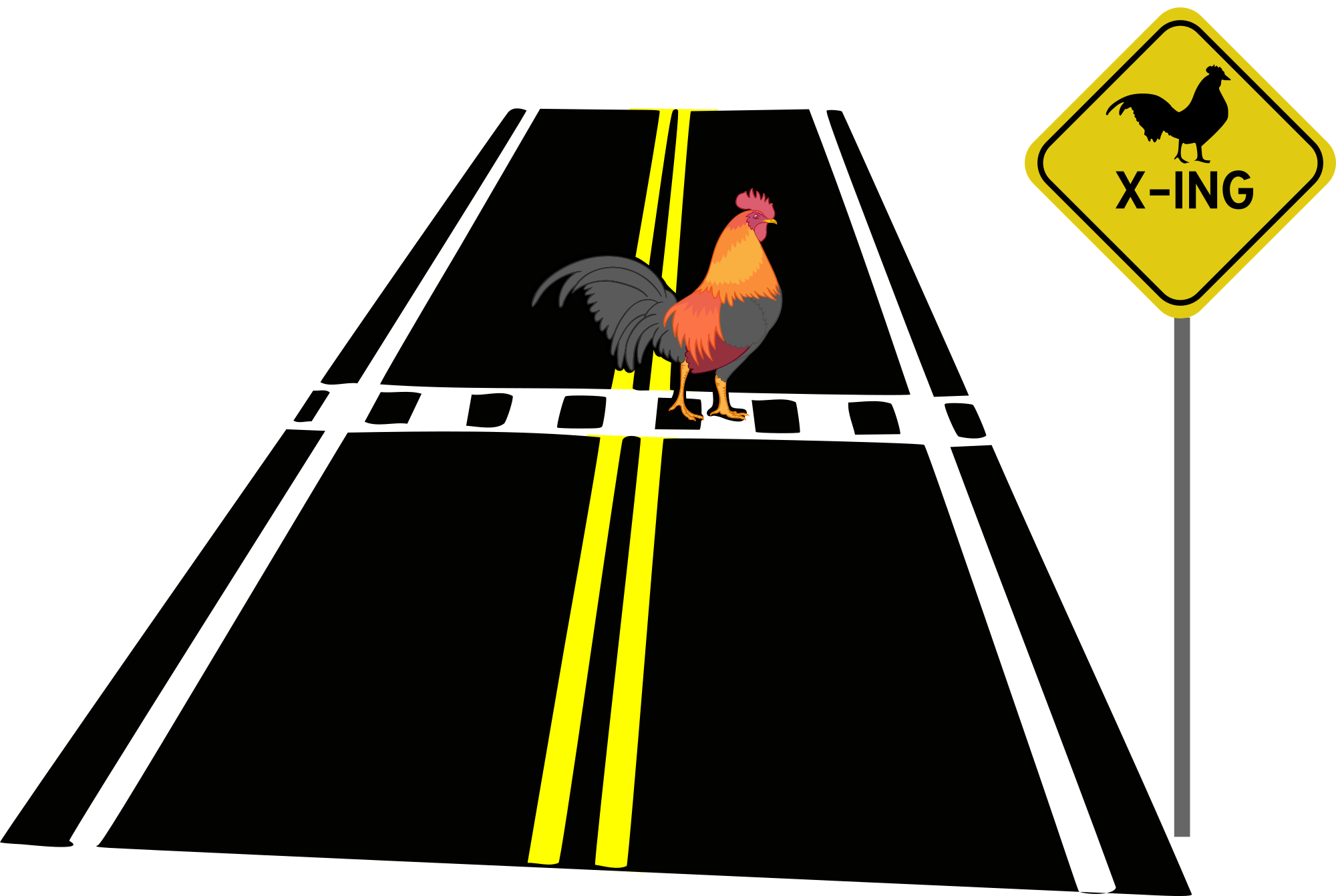 illustrating the famous joke that begins "Why did the chicken cross the road?"