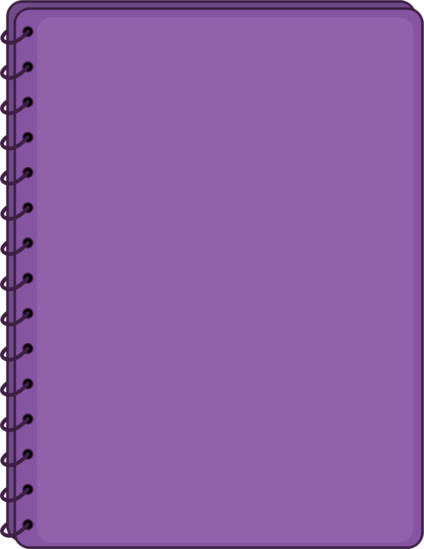 A spiral bound purple notebook, front view cover.