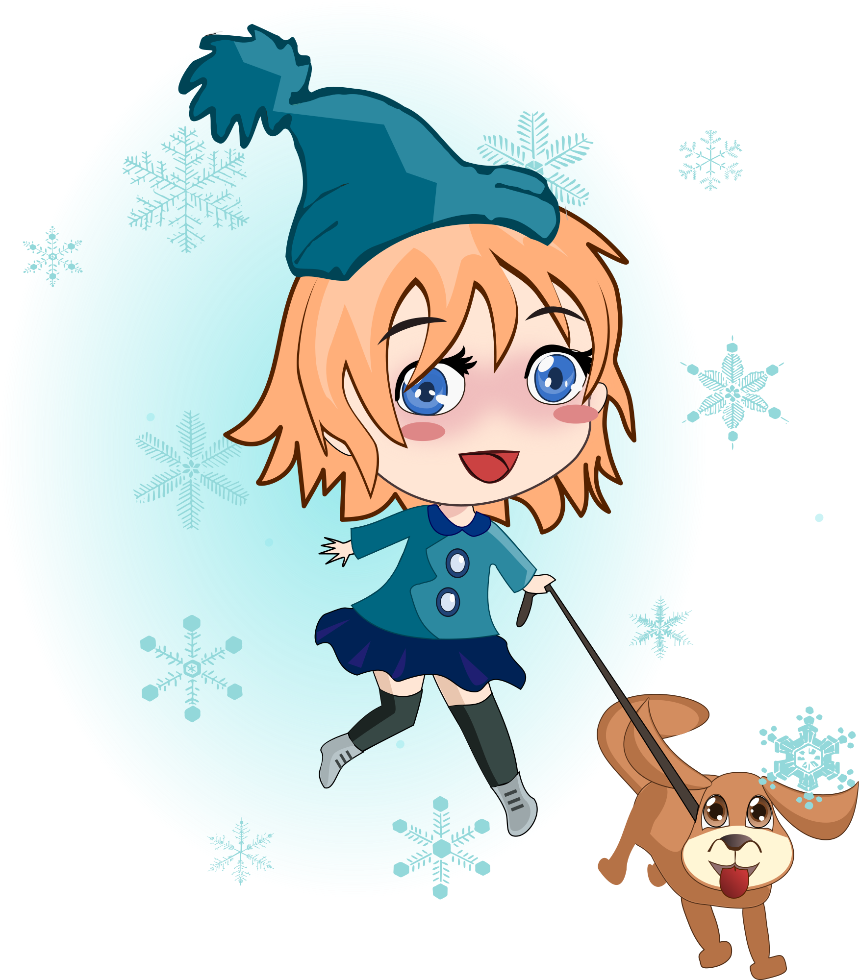 I thought while I was doing an autumn version I might as well go for a winter version of this girl walking with her dog...
