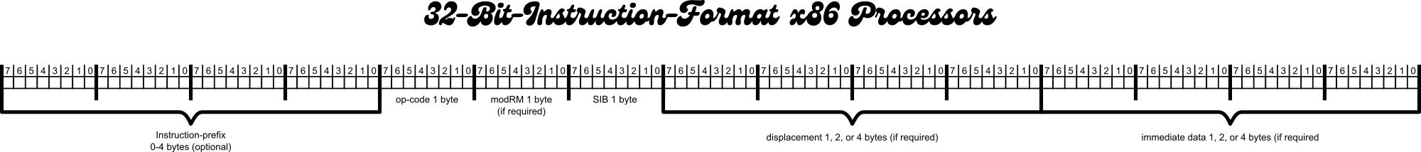 This is an illustration of the instruction format in x86-32 processors.