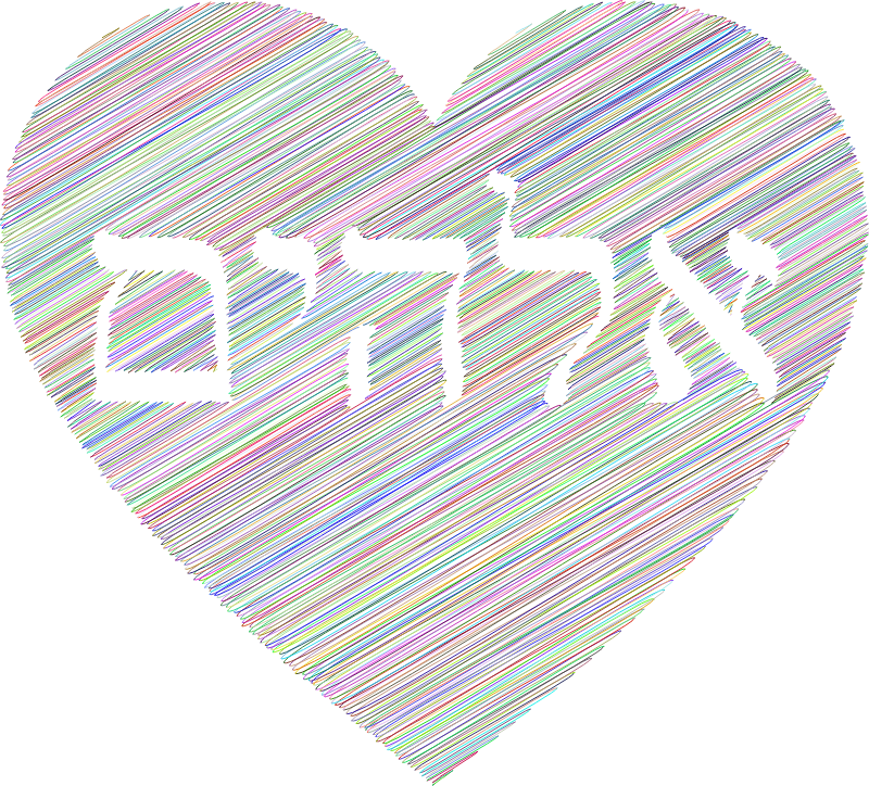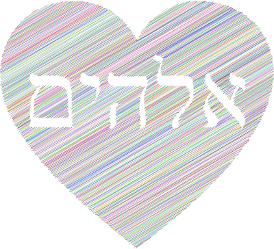 - God Elohim Heart Love Hebrew Line Art Typography Calligraphy Judaism Jewish Decorative Ornamental Decoration Divine Religion Spirituality Faith Holy Prayer Colorful Prismatic Chromatic Rainbow