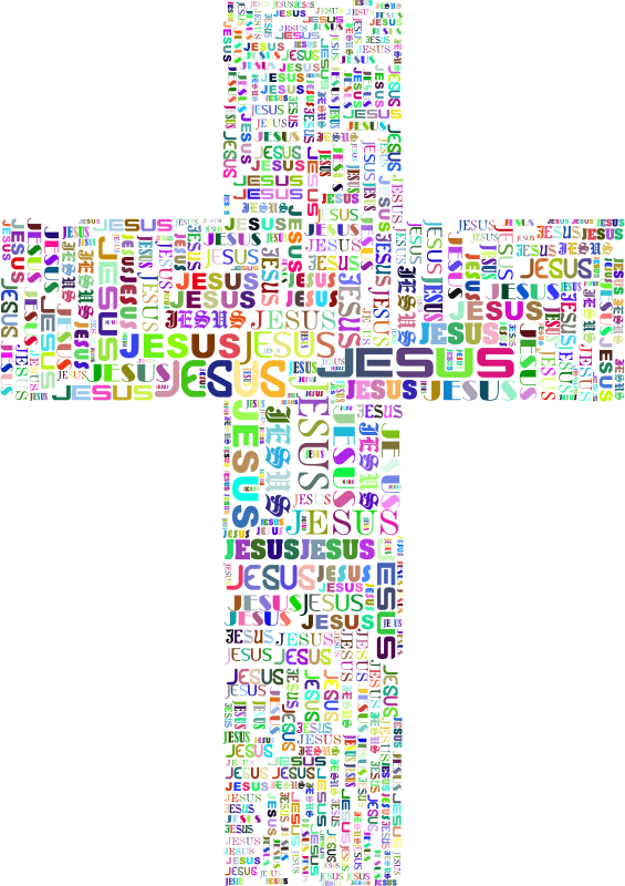 - Jesus Cross Typography Christianity Christ Divine Faith God Holy Messiah Prayer Catholic Christian Church Crucifix Religion Spirituality Decorative Ornamental Decoration Colorful Prismatic Chromatic Rainbow Gold