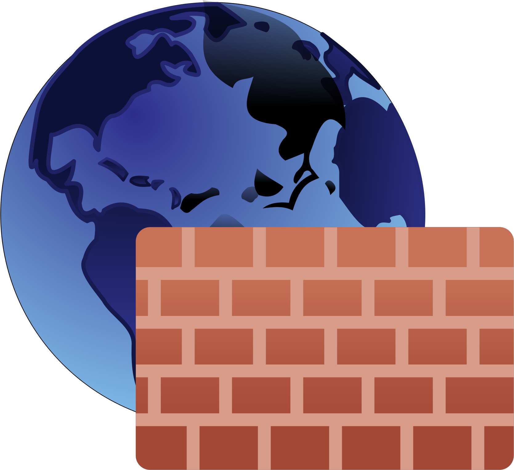 I made a brick wall and put it in front of a slightly changed version of the blue earth clipart by @darkowl