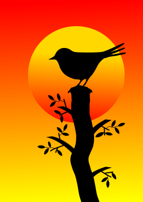 Silhouette with bird and tree