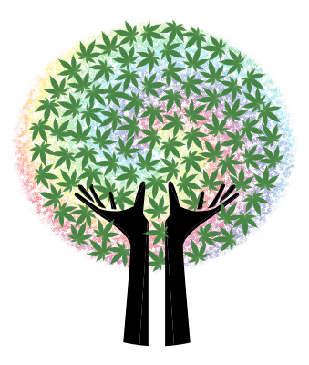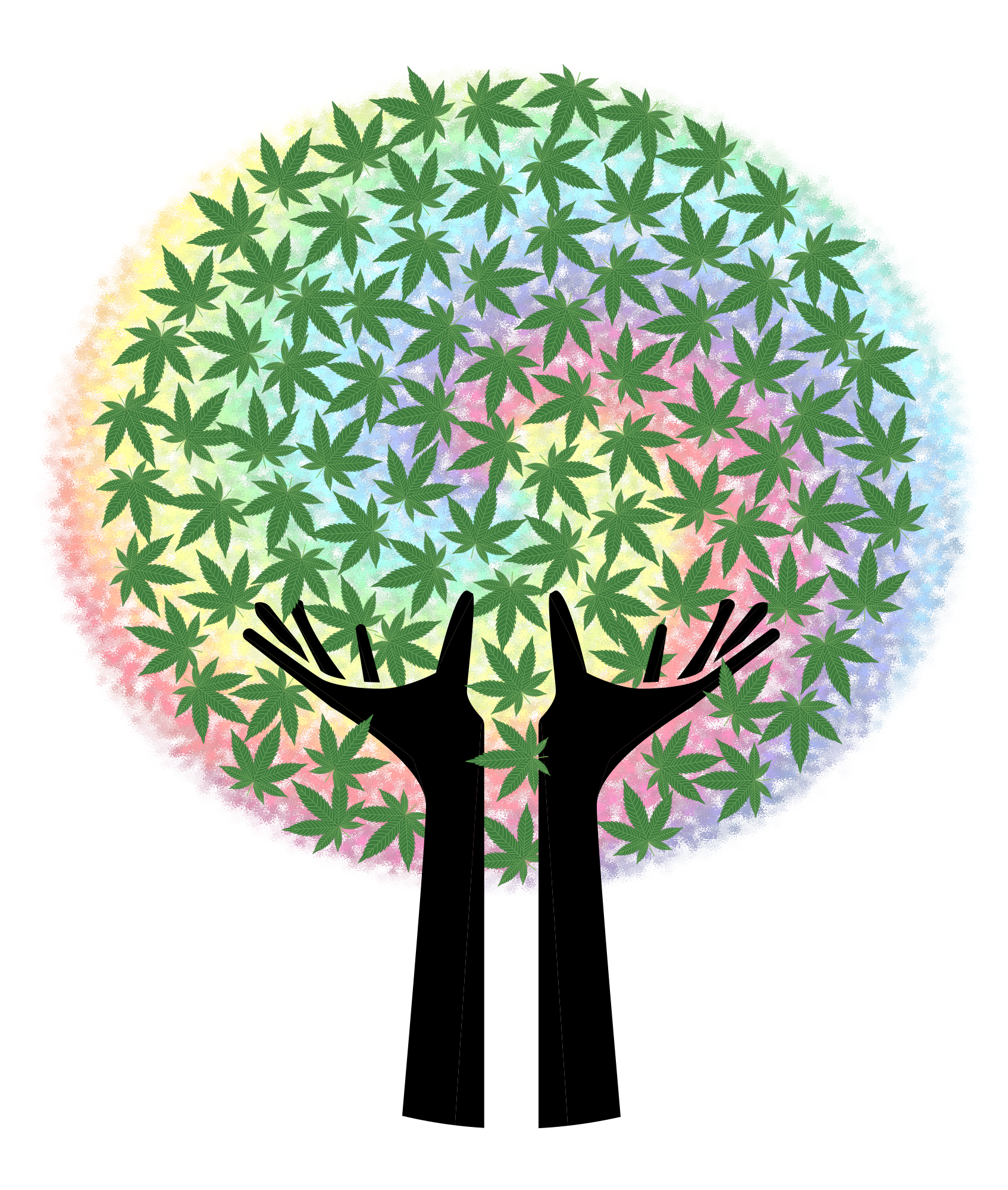 rainbow swirl hands tree of marijuana