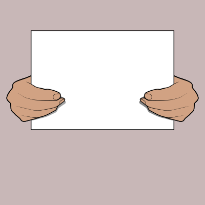 Hands holding a blank sheet of A4 paper.