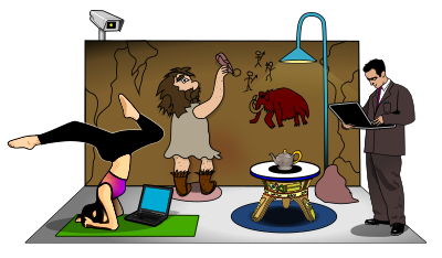 My first clipart was not very understandable so I added diversity with a businesswoman/influencer/youtuber; a caricature of the "new" digital economy. I added too an ethnic-style center table (with a teapot that serves no purpose, since everyone works in their own bubble).